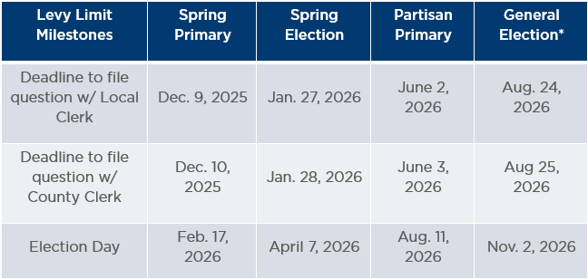 Municipalities considering a referendum must navigate strict filing deadlines and election schedules. Below are the critical deadlines for the four 2026 elections: